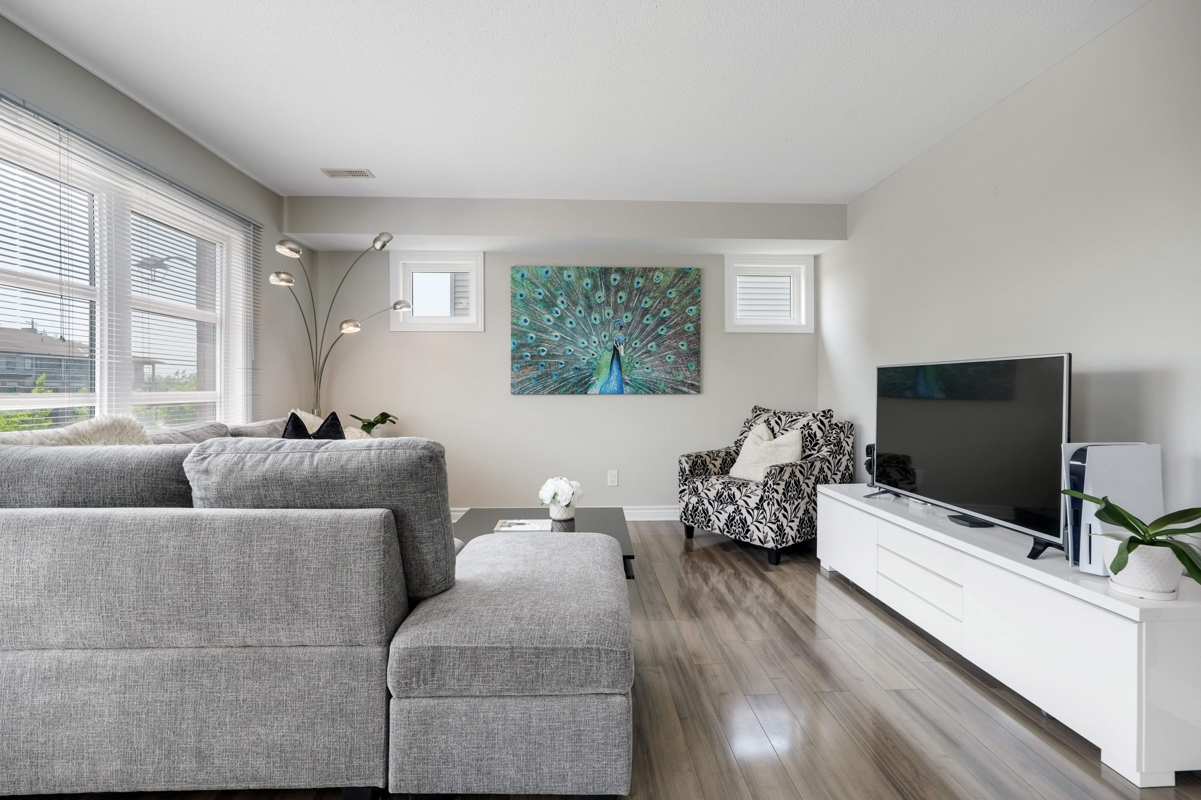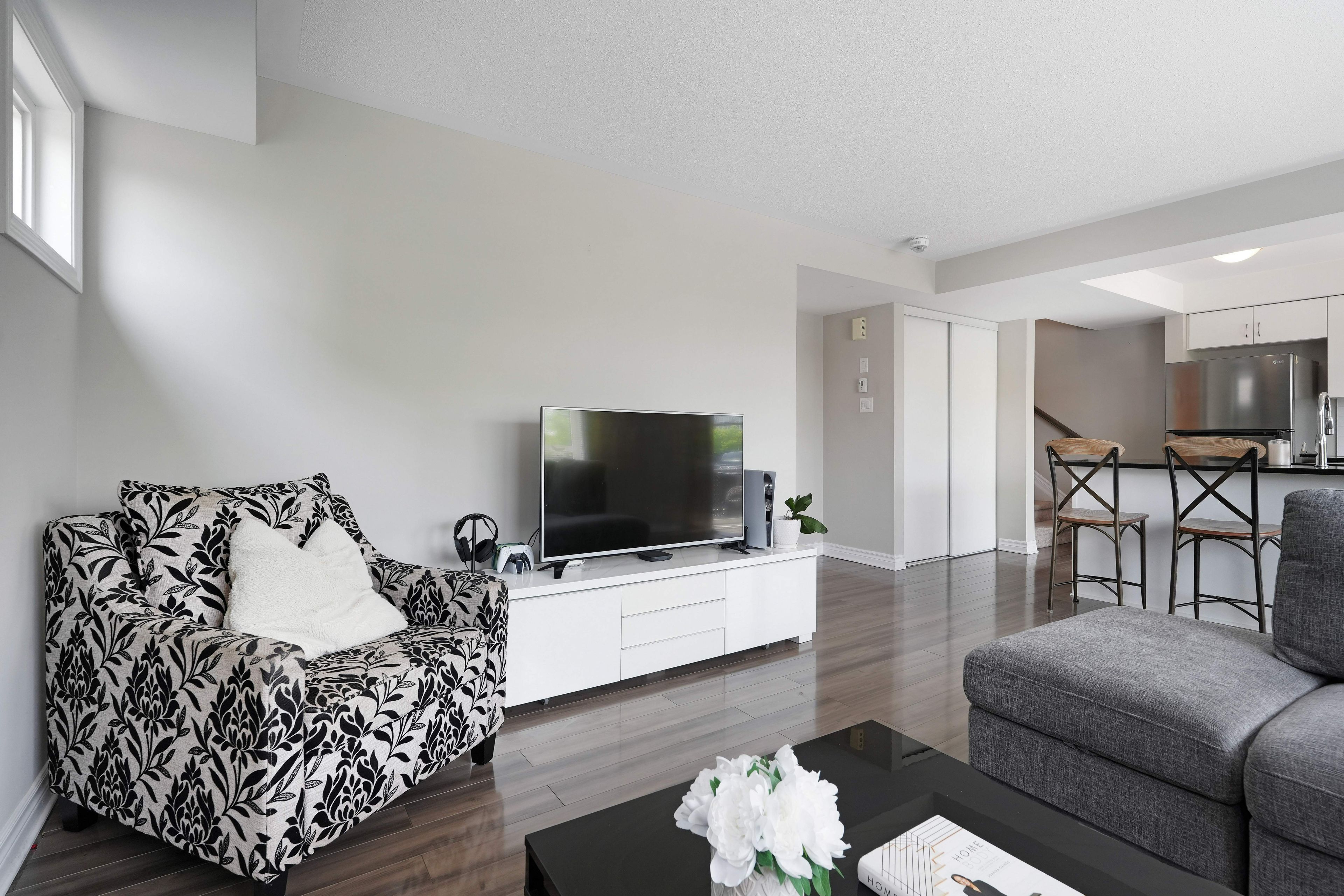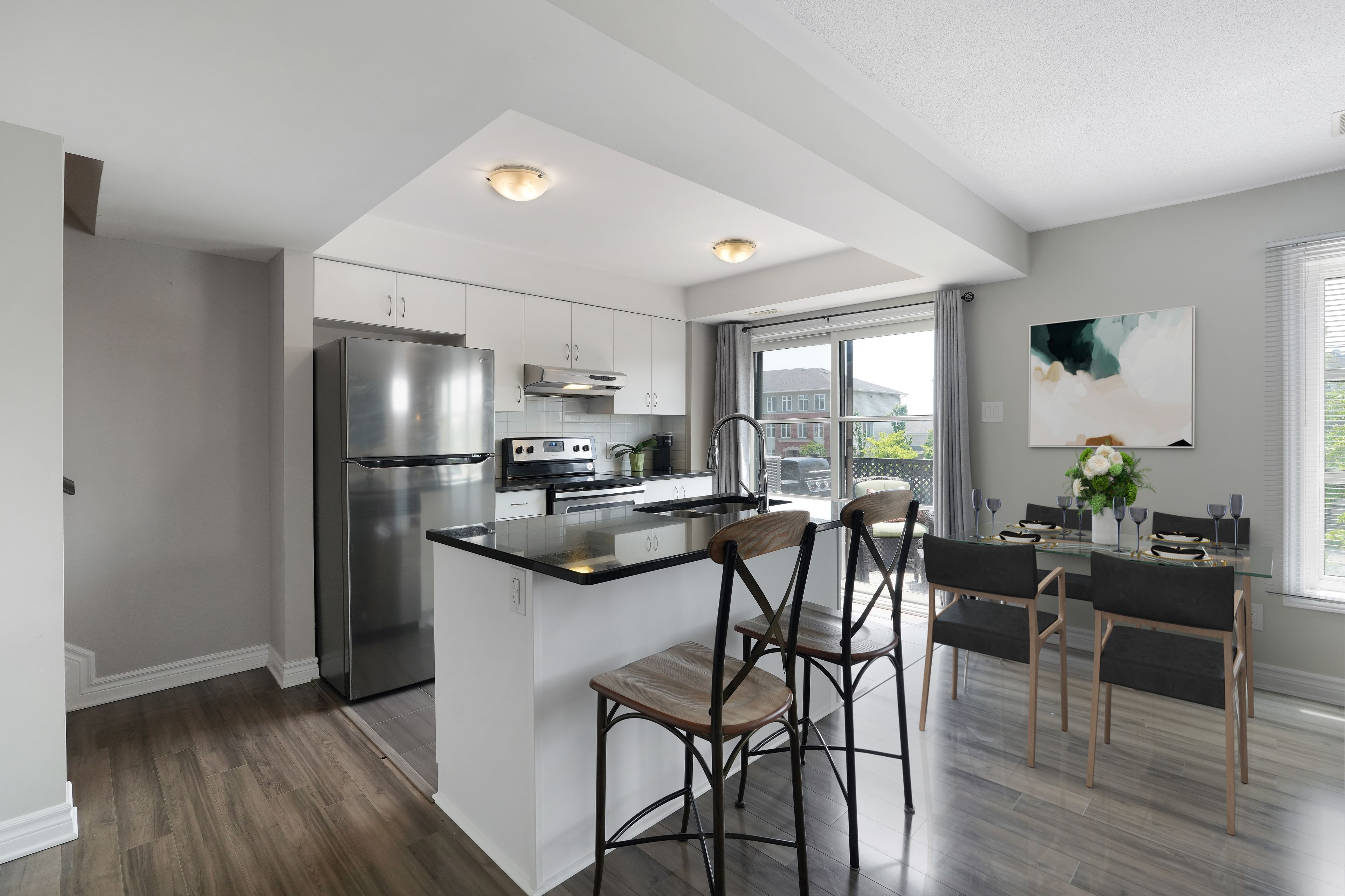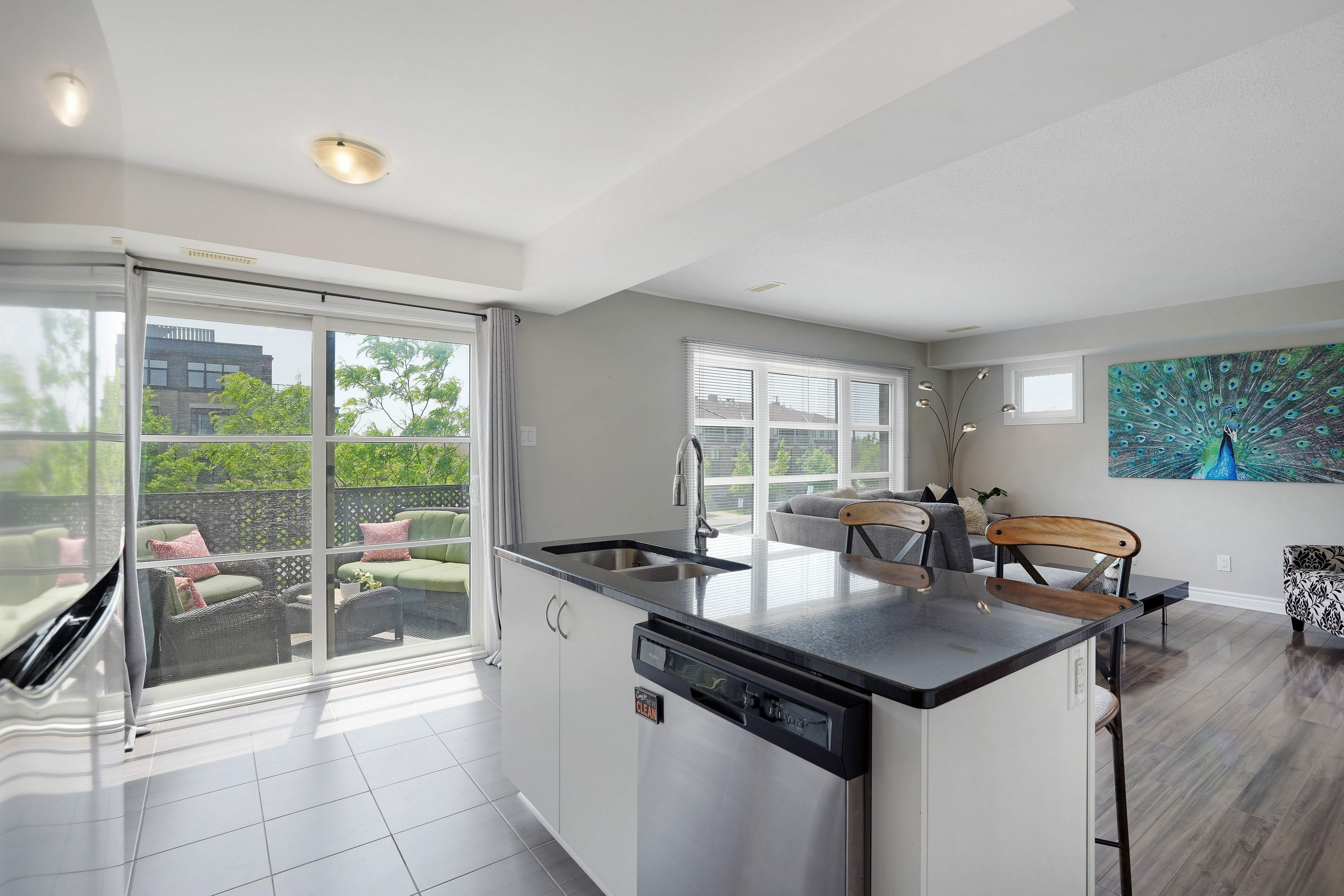 OPEN HOUSE: SUNDAY, MARCH 22, 2:00-4:00 PM. Stylish Upper End-Unit Condo in the Heart of Barrhaven. Welcome to this bright and beautifully maintained 2-bedroom, 1.5-bathroom upper end-unit condo, ideally located just steps from the vibrant amenities of Chapman Mills Marketplace. Enjoy the convenience of having restaurants, shops, Loblaws, a movie theatre, parks, and transit all within easy walking distance. Designed with comfort and style in mind, this home features an open-concept layout enhanced by abundant natural light from its desirable eastern exposure. The modern white kitchen is both elegant and functional, showcasing quartz countertops, ceramic tile flooring, stainless-steel appliances, and a large island with breakfast bar-perfect for casual dining or entertaining. The spacious living and dining areas feature wide plank grey laminate flooring, large windows with custom window coverings, and direct access to a generous private balcony-an ideal space to enjoy your morning coffee or evening BBQ. Upstairs, you'll find two generously sized bedrooms with wall-to-wall closets and neutral broadloom, along with a well-appointed 4-piece bathroom featuring ceramic tile flooring and a tiled tub/shower. A convenient second-floor laundry closet adds everyday practicality. Additional highlights include a dedicated parking space and ample visitor parking nearby. Perfectly suited for first-time buyers, professionals, downsizers, or investors, this move-in ready home offers exceptional value in one of Barrhaven's most walkable and connected neighbourhoods. With transit at your doorstep-including a direct 25-minute bus ride to downtown Ottawa-and monthly ownership costs comparable to renting, this is an outstanding opportunity to own in a sought-after community